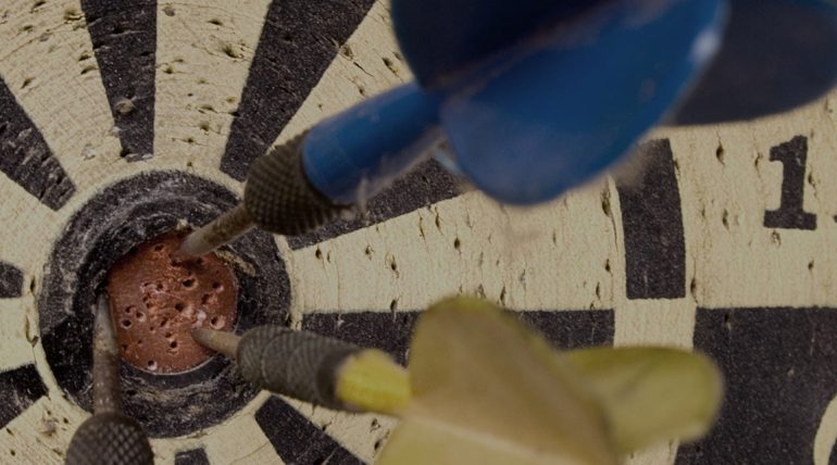 Dartboard with darts representing remarketing ads